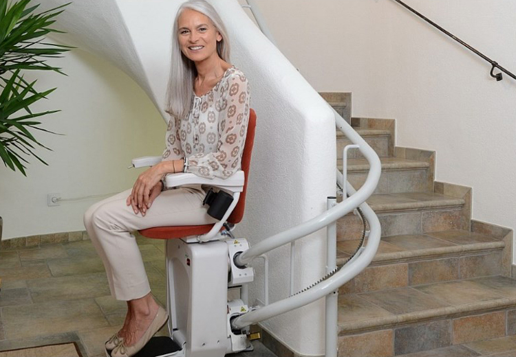A széklift egy ülőszékes személyemelő berendezés, mely biztosítja a lépcsőjárásra nem - vagy csak részben - képes személyek akadálymentes közlekedését az épület felső szintjére, vagy éppen csak fel a teraszra. A lift használaton kívül felhajtott állapotban parkol a végálláson, s így 32 cm-t foglal el. Lehajtva 65 cm helyigény van. A szék beülő magasságát a helyszínen állítjuk be, a beteg igényének megfelelően. A betegnek az alsó szinten a lépcső előtti talajszinten kell beülni a székbe, majd a széklift segítségével jut fel a felső végállásba, ahol a szék kifordításával a talajszintre száll ki. Így hosszú lépcsőzés elkerülésével jut fel az emeletre.